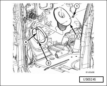 - Remove fasteners (1) securing shaft seal and cover (2) in place, then lift shaft seal and cover from intermediate shaft extension (4) and floor pan.