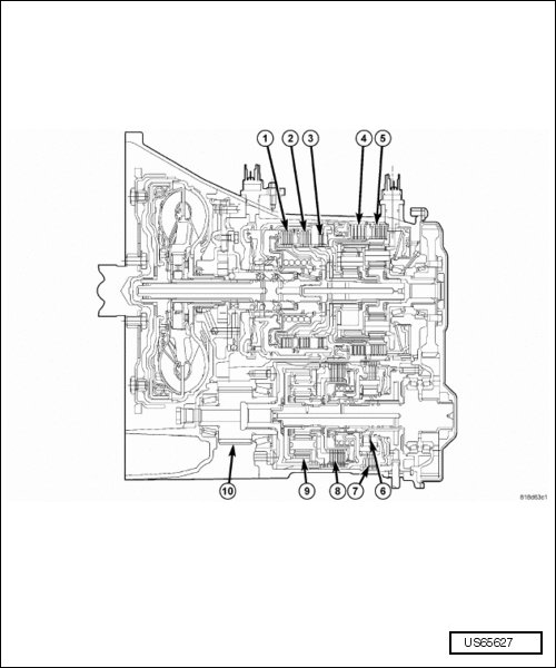 The planetary gear train for the 62TE transaxle provides six forward gear ratios, including two fourth gear ratios. One reverse gear ratio is also provided.