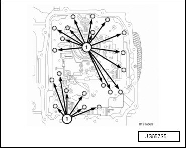 - Remove valve body bolts (1).