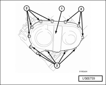 - Remove fluid filter oil pan bolts (1).