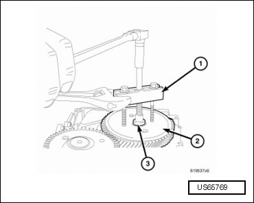 - Install the oil pump puller (C-3752) (1) to the oil pump.
