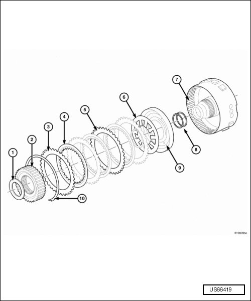 - Install the direct clutch retainer (8) onto the retainer (7).