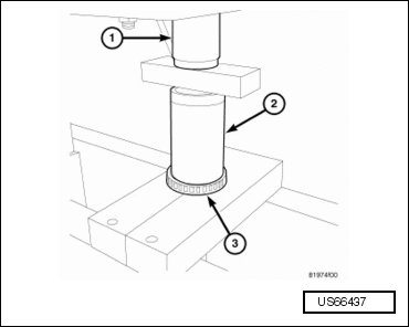 - Install compressor (8250) (2) over the direct clutch balance piston (3) and place onto a arbor press (1).