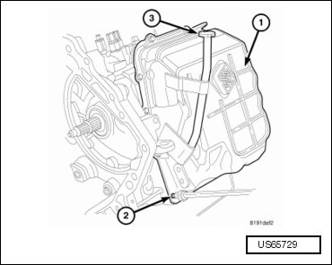 - Remove the valve body oil pan (1) upper bolts.