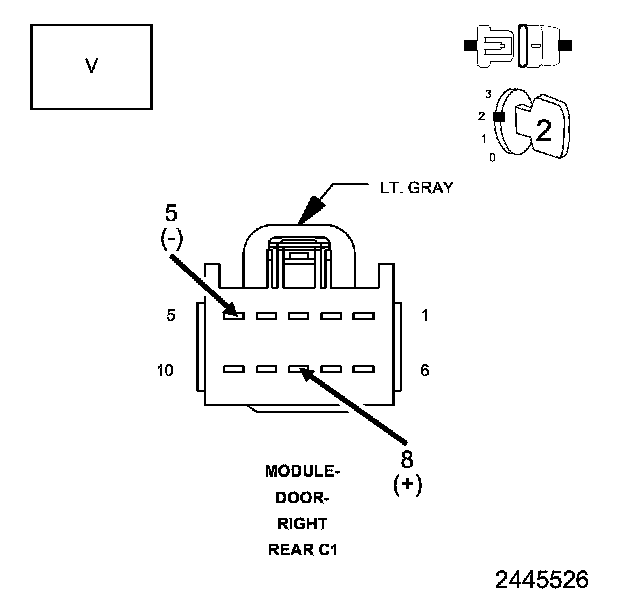 • Using a voltmeter, measure the voltage between the (A113) Fused B(+) circuit and the (Z909) Ground in the Door Module C1 connector.