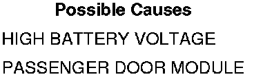 • Set Condition: When the TIPM sends a message to the door module that the input voltage of the vehicle is above 16 volts for over 15 seconds, this code will set.