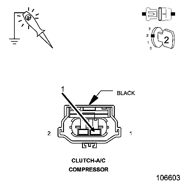 • Using the 12-volt test light connected to ground, check the (C3) A/C Clutch Driver circuit in the A/C Compressor Clutch harness connector.
