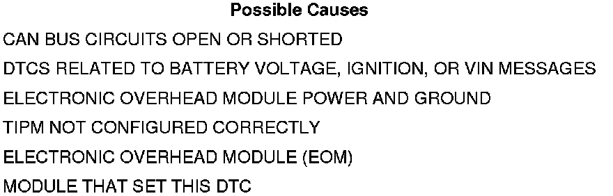• Set Condition: Bus messages not received from the Electronic Overhead Module (EOM) for approximately two to five seconds.