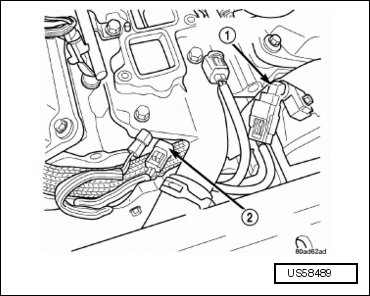 - Disconnect the wiring harness electrical connector (2) from the ECT sensor.