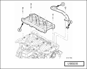 - Install the oil pump pickup tube (1) and bolt. Tighten the bolt to 28 Nm (21 ft lbs).