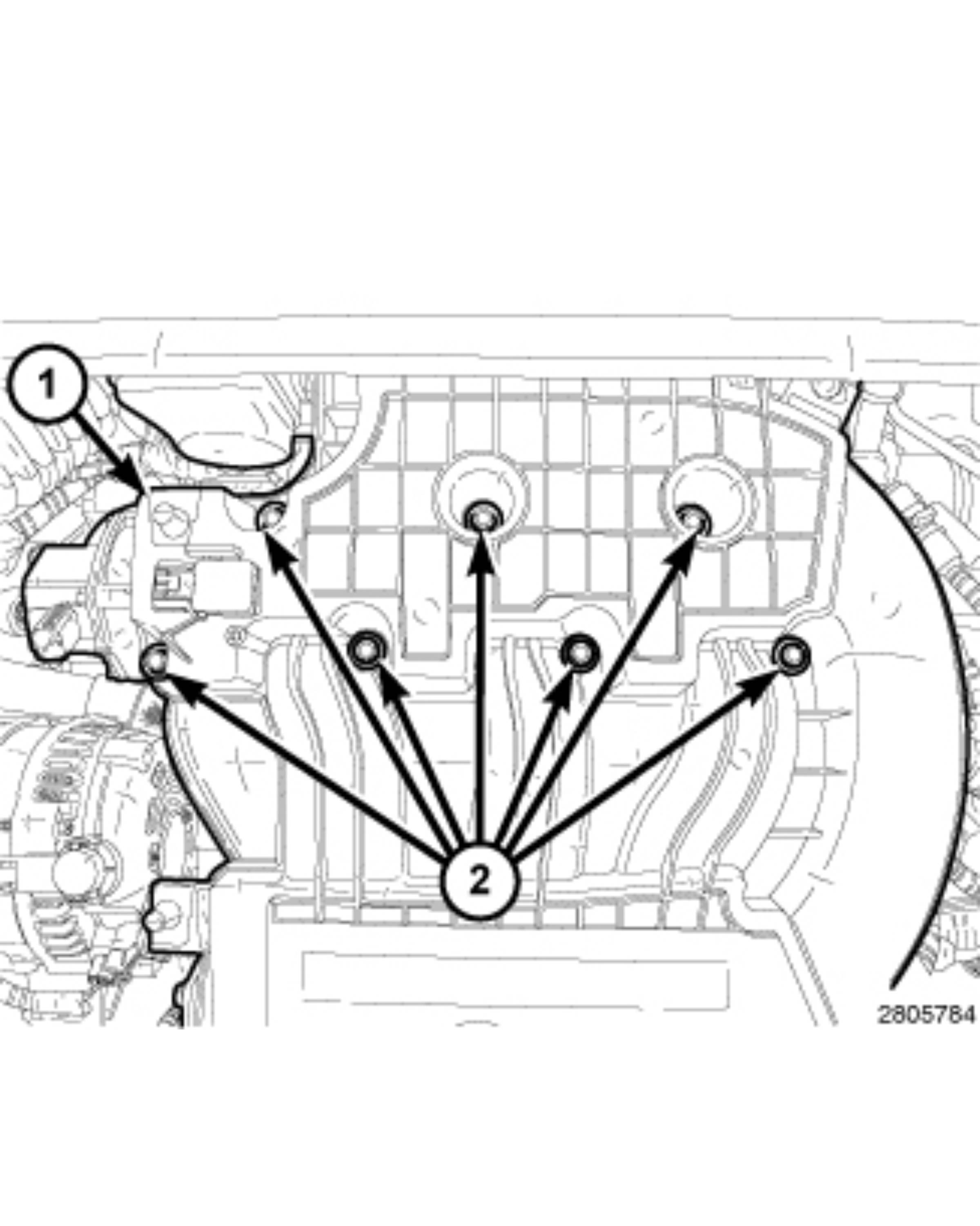 Install two studs (2) to the intake manifold support brackets (1). Tighten the studs to 12 Nm (105 in. lbs.).