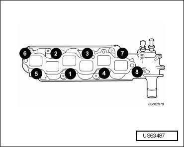 Install the intake manifold bolts and tighten in the sequence shown to 28 Nm (21 ft lbs).