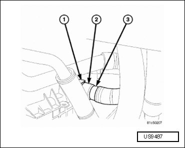 - Remove the positive crankcase ventilation hose (3) from the PCV valve (2).