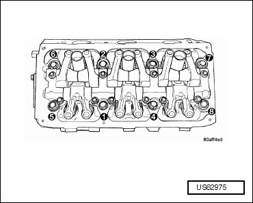 - Tighten the cylinder head bolts according to the following, in the sequence shown (1 through 8) to the following specifications: