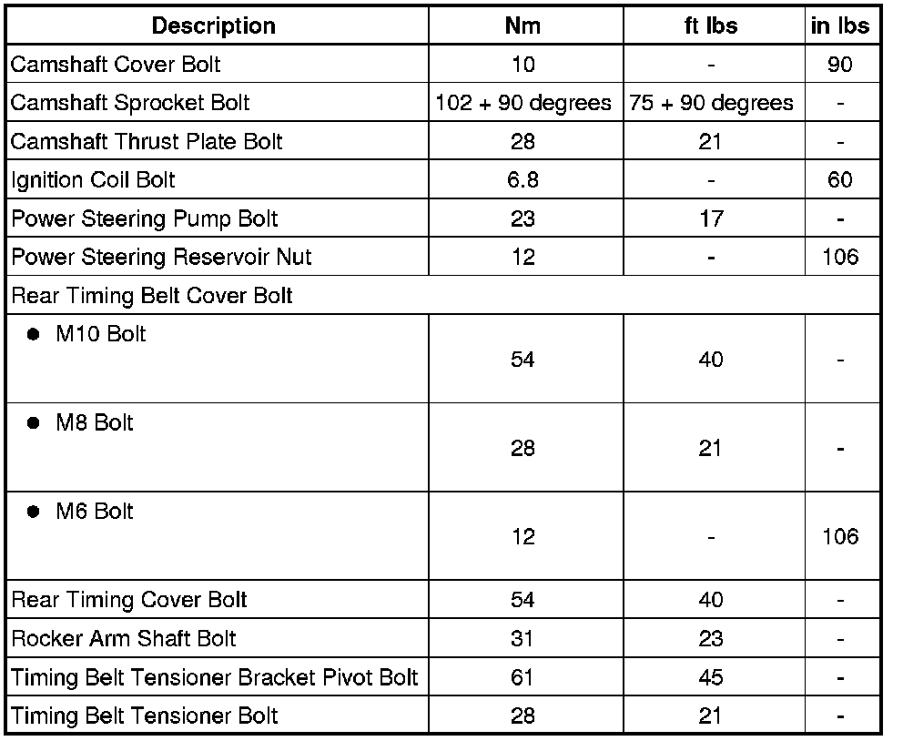 Cylinder Head, Valvetrain - Fastener Tightening Specifications