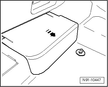 - Remove cover under seat in - direction of arrow -.