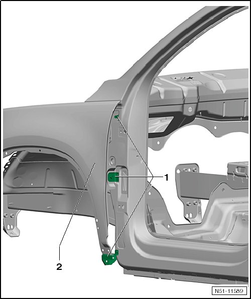 - Attach the fender mount - 1 - to the fender - 2 -.