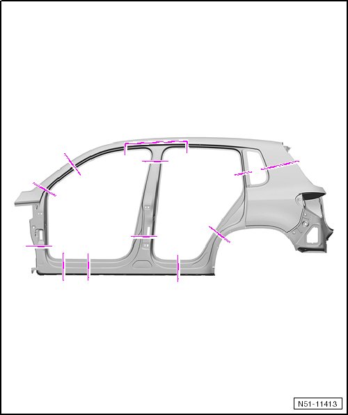 • Sub-part, front side panel (replacement part identification: sub-part pillar A/ B with sill panel)
