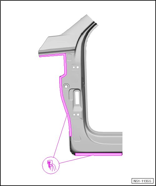 - Apply 2K body adhesive (D 180 KD3 A2) in the areas where it was bonded during production; adhesive bead: approx. 3.5 mm dia..