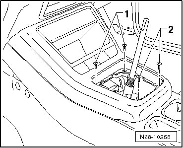 - Swivel the cover - 1 - upward out of the mounts in the center console and disconnect, depending on the vehicle equipment lever, the harness connectors.