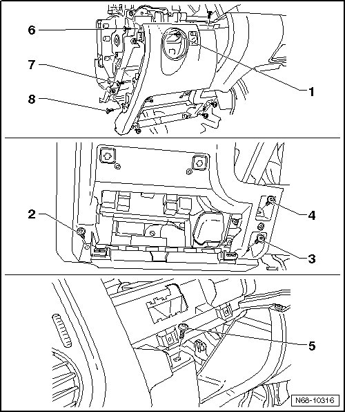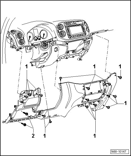 - Remove the 15 screws - 1 - and loosen the instrument panel trim.