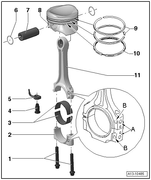 Due to the separation procedure (cracking) for the connecting rod, the cap only fits in one position and only on the correct connecting rod.