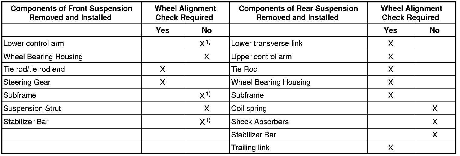Wheel alignment must only performed using VW/Audi-approved wheel alignment equipment!