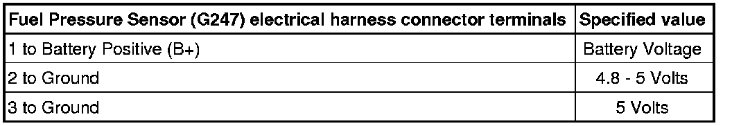 - Using a multimeter, check the Fuel Pressure Sensor (G247) view - 1 - electrical harness connector terminals for voltage.