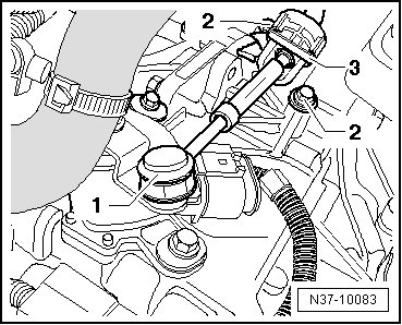 - Remove the selector lever cable - 1 - from the selector shaft lever by hand.