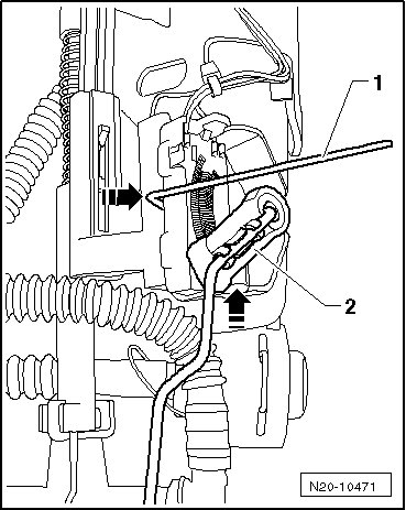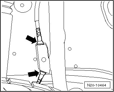 - Unclip the wheel speed sensor wire - arrows - from the retainer on the filler neck.