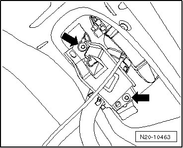 - Tighten the bolts - arrows - for the fuel filler neck to 8 Nm + 90° (1/4) additional turn.