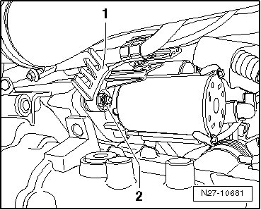 - Remove the upper nut - 1 - on the wire retainer - 2 -.