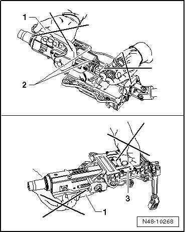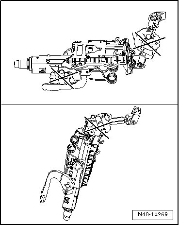 • Hold steering column at upper steering rod tube and in area of upper universal joint
