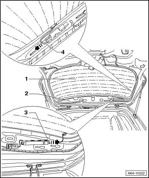 - Disconnect the electrical connectors - 4 - for the heated rear window - arrow - and press connector tabs onto window.