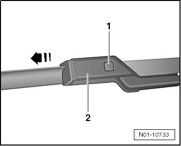 - Depending on the version, rotate the wiper blade with the lip upward and remove it or loosen the wiper blade at the joint - 3 - by pressing the locking mechanism - 1 - in the retainer - 2 - and removing the wiper blade.