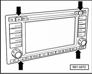 - Coding of radio system in radio navigation system. Refer to => [ Radio Components, Adapting ] Testing and Inspection.