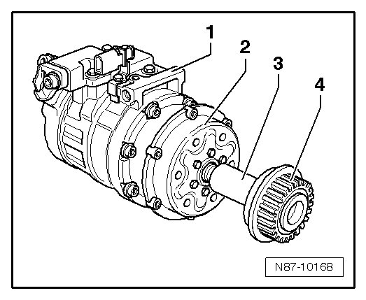 - Install Adapter (07Z 260 361) - 3 - in A/C compressor - 1 - overload protection - 2 -.