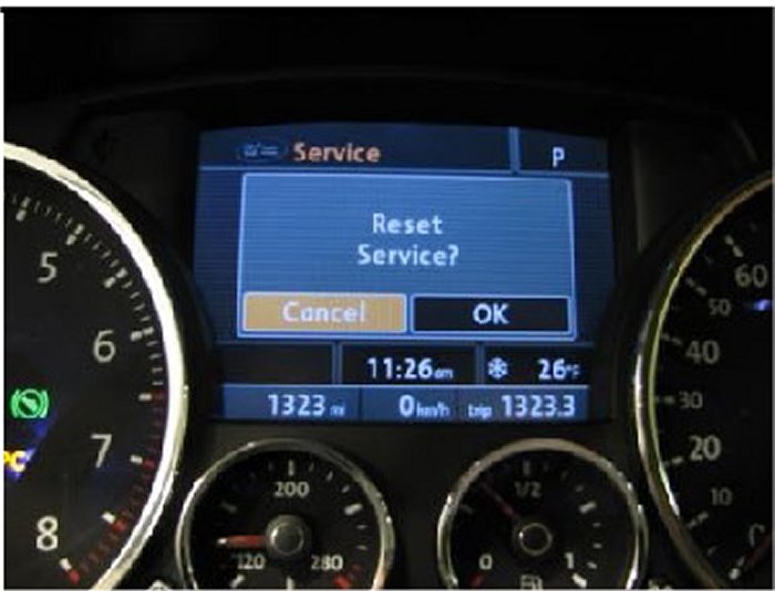 NOTE: After resetting the service reminder, dashes will be displayed in "Service in" miles and days values. The vehicle must be driven approximately 100 miles before the correct values will be displayed.