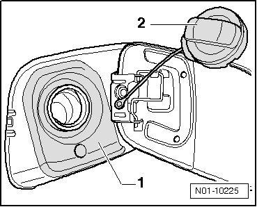 - Hook the gas cap - 2 - onto the top of the tank filler door.