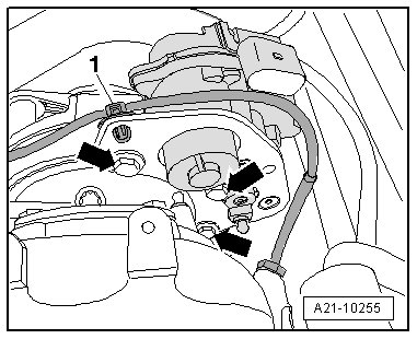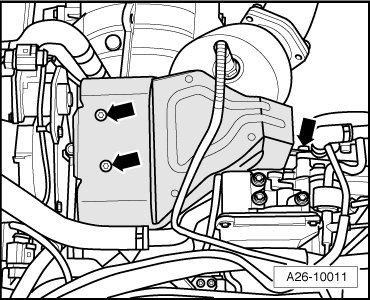 - Install the new turbocharger 1 control module in the opposite sequence but only tighten the bolts - arrows - by hand.