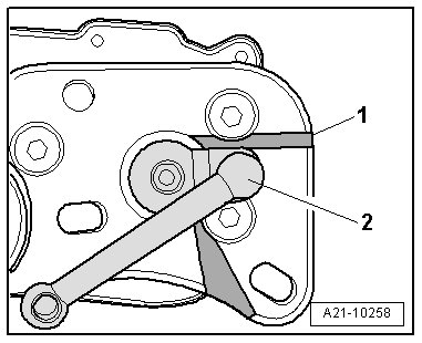 • The edge of adjusting lever - 2 - must be within mark - 1 -.