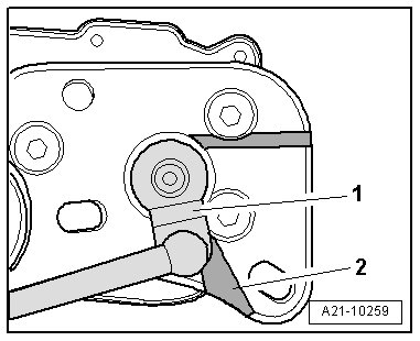 • The edge of the adjusting lever - 1 - must be within the mark - 2 -.