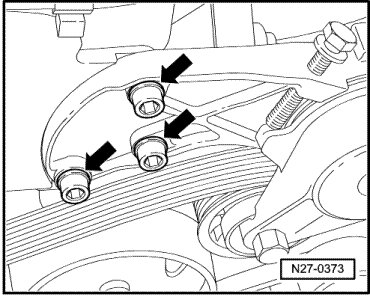 - Remove bolts for tensioner - arrows -.