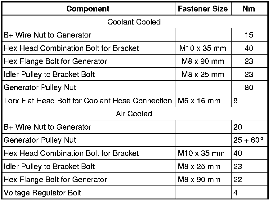 Fastener Tightening Specifications, Generator