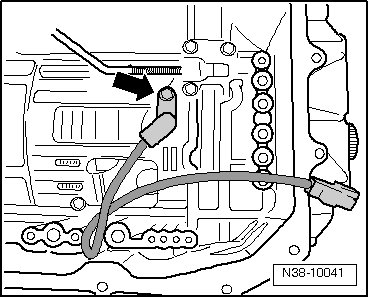 - Tighten the transmission output speed (RPM) sensor bolt - arrow - to 10 Nm.