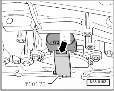 - Turn the switch until the tab on the connector - arrow 1 - engages the groove in the (T10173).
