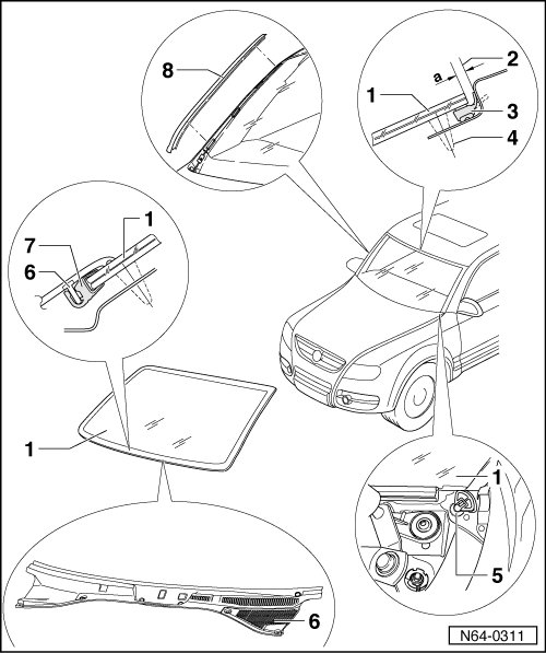 Removing and installing windshield, refer to => [ Windshield ] Windshield