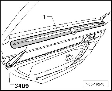 - Pry the cover - 1 - out of the door trim using the Trim Removal Wedge (3409).