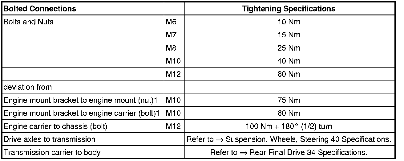 • When installing the engine/transmission into the vehicle, it is always necessary to bring the engine carrier into contact with the body using the scissor lift table (VAS 6131). Pulling up the engine carrier using the bolts damages the thread inserts!