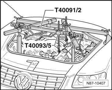 - Position Engine Support Bridge (10-222 A) with Adapters (10-222 A/22) and Connectors (T40091/3) on to bolted flanges of fender.